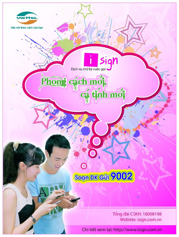 Vn hoặc gọi điện đến tổng đài 19008198 để được hướng dẫn trực tiếp về chương trình. Com. Thỏa sức sáng tạo và diễn đạt cá tính, nhắn gửi thương tình tới người thân bè bạn hay thông điệp trái tim đến một nửa của mình, iSign đã và đang cùng với một số tiện ích khách như nhạc chuông, nhạc chờ làm phong phú thêm cho người dùng nhiều cách thức diễn đạt dấu ấn cá nhân chủ nghĩa đối với mọi người.